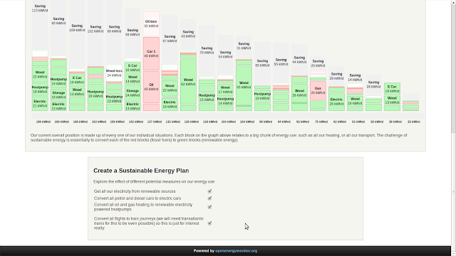 The application is largely inspired by David Mackay's book Sustainable Energy Without the Hot Air (free to read online) as you can see from the use of the energy stacks. The aim is also very much about creating a tool that helps to create sustainable energy plans that add up and in the spirit of openenergymonitor and David Mackay's book the application is open source.