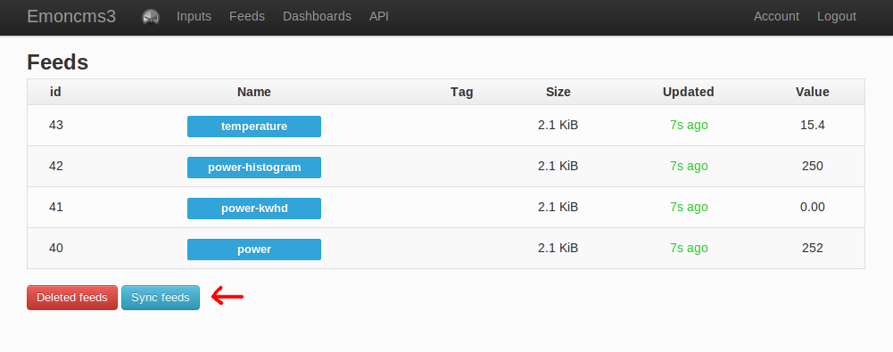 You can then click on the feeds you wish to download. This will enter the feeds into a download queue. As detailed in the last post the download and import process is run by a separate script. The script is called import.php and can be found in the root directory of the emoncms install. You can either run this script manually or set up a cron job to run it periodically.