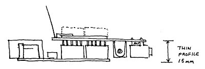 It got me thinking about different ways the shield could be arranged that would make it stack better with a variety of different boards. The main idea I had was to move the AC-AC Adapter and CT inputs over to the other side of the PCB away from the side the Ethernet and USB sockets are usually located on most of the Arduino boards and the NanodeRF. The second idea was to mount these sockets on the underside of the PCB which allows for a really thin profile NanodeRF + EmonTx shield stack which I think is pretty neat if a little unconventional. Here's the concept drawing: