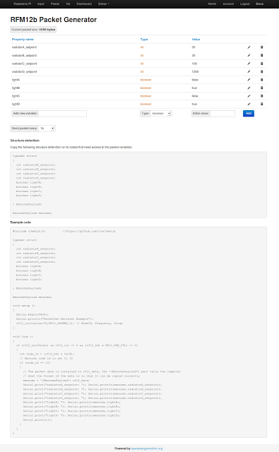 Adding control to emoncms: RFM12b Packet Generator