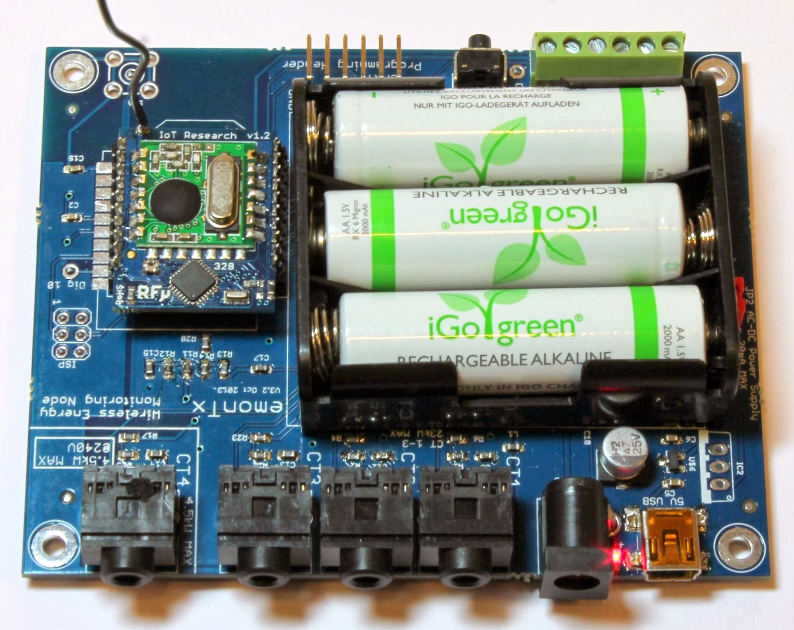 | emonTx V3 with ATmega328, RFM12B and on-board 3 x AA batteries |