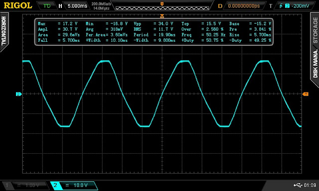 The scope was connected up to measure the voltage drop across a shunt resistor as follows: